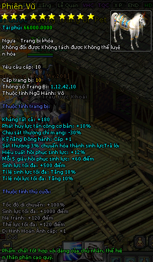 - Người tiêu diệt boss chắc chắn nhận được các vật phẩm. Ngoài ra còn có tỉ lệ nhận được Rương Trang Bị Đồng Hành Cấp 4,3,2,1. Ngựa Phiêu Vũ rất vip. [ngựa rơi ra đất tránh mất]